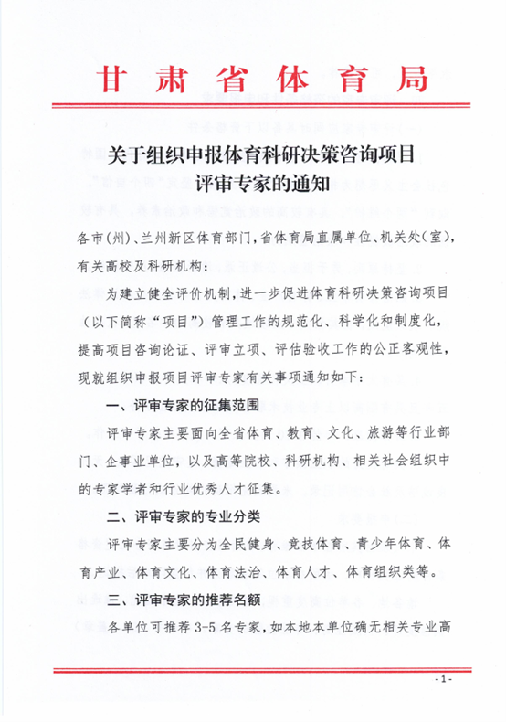 关于组织申报体育科研决策咨询项目评审专家的通知